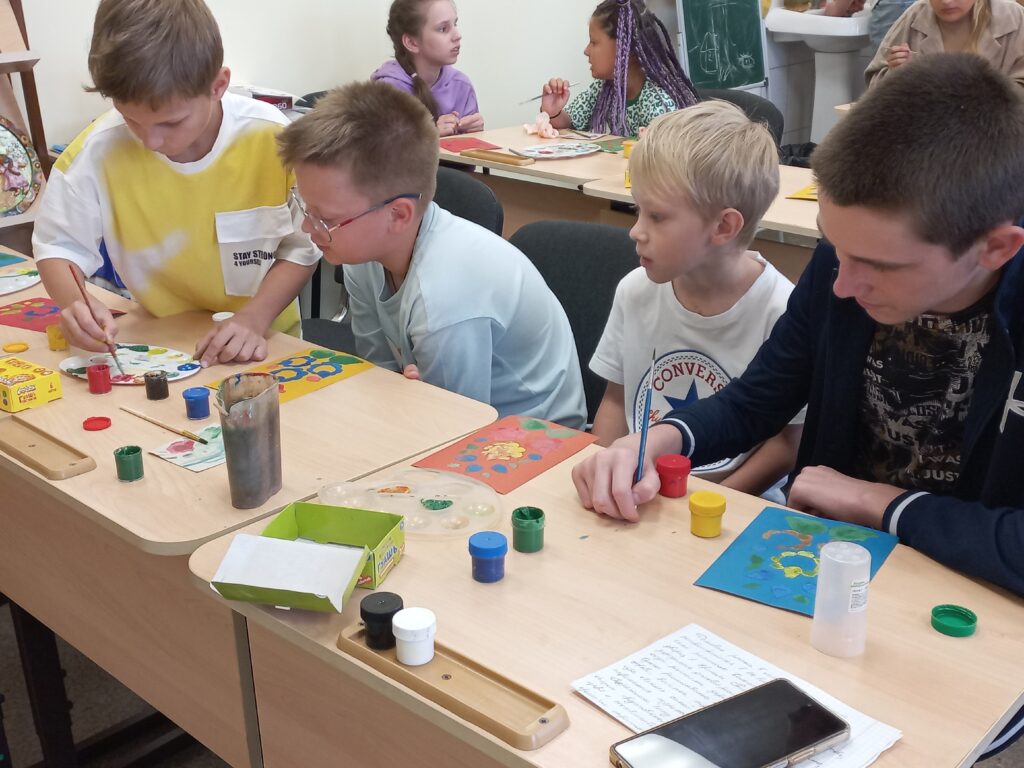 Россия – огромная многонациональная страна, каждый из народов которой богат своим искусством, традициями и обычаями. ️В лагере “Созвездие талантов” прошёл мастер- класс по домовой росписи. Домовая роспись зародилась на Русском Севере в XII веке. Ей украшали не только церкви и богатые терема, но и дома обычных крестьян. Самое частое изображение в домовой росписи – цветы: розы, тюльпаны, полевые. Сегодня наши ребята прикоснулись к этому прекрасному виду народного искусства, изобразили фрагмент цветочного орнамента.